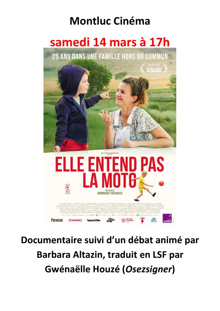 Un documentaire sur le handicap de la surdité Publié le 9 mars 2026 par montluccinema Partager : Partager sur X(ouvre dans une nouvelle fenêtre) X Partager sur Facebook(ouvre dans une nouvelle fenêtre) Facebook J’aime chargement…